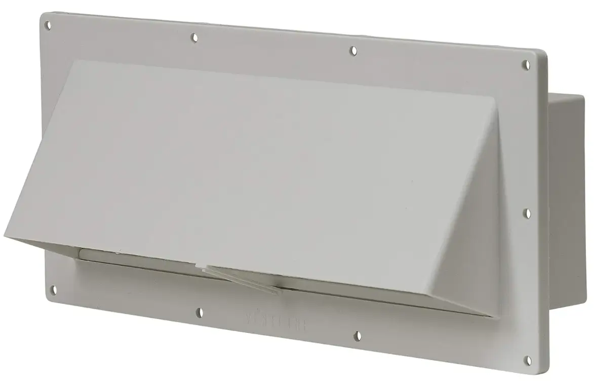 The Ventline V2111-13 Polar White Horizontal Exterior Wall Vent provides a clean, weather-resistant exterior finish while allowing proper airflow for exhaust fans and ventilation systems. Its durable construction helps protect your ducting from debris, pests, and outdoor elements. Designed for easy installation, it’s an ideal replacement or upgrade for maintaining efficient airflow in homes, RVs, and manufactured housing